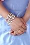 Featuring a gold finish bracelet studded with red kundan polki and pearls, set in mixed metal. This bracelet radiates timeless elegance, perfect for wedding celebrations, festive soirees or cultural gatherings adding a regal charm to every look.