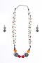 Black Rhodium Finish Multi-Colored Beaded & Pearl Long Necklace Set