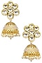 Featuring a pair of gold finish earrings with kundan stone round top and cutwork jhumki drop with pearl hangings, set in metal alloy.