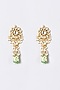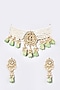 Featuring a 22 Kt gold plated layered necklace studded with leaf green beads, pearls, and kundan polki, set in mixed metal. It is paired with a pair of matching earrings.