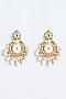 Featuring a pair of 22 Kt gold plated chandbali earrings studded with kundan polki, pearls, quartz stone, and beads, set in mixed metal.