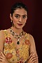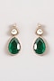 Featuring a 22kt gold plated tiered necklace studded with emeralds and white stones, set in mixed metal. It is paired with a matching pair of earrings. Ideal for festive occasions or wedding celebrations.