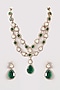 Gold Plated Emerald & White Stone Tiered Necklace Set
