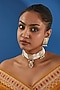 Featuring a 22kt gold plated choker necklace studded with pearls and jadau, set in mixed metal. It is paired with a matching pair of earrings. Perfect wear for festive occasions or wedding ceremonies.