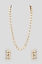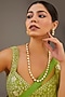 Featuring a 22kt gold finish long necklace studded with kundan polki, set in mixed metal. It is paired with a matching pair of earrings. Perfect choice for weddings, parties, and other Indian festivities.