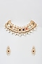 Featuring a 22kt gold plated choker necklace studded with kundan polki, navratan stones and pearls, set in mixed metal. It is paired with a amatching pair of earrings