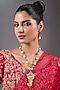 Featuring a 22kt gold plated kilangi pendant necklace studded with kundan polki and pearls, set in mixed metal. It is paired with a matching pair of earrings. Perfect for grand occasions like weddings and traditional festivities.