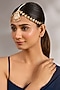 Featuring a 22kt gold plated matha patti studded with kundan polki, pearls and chand motifs, set in mixed metal. Perfect wear for festive occasions or wedding ceremonies.