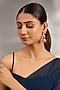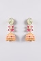 Featuring a pair of 22kt gold plated jhumka earrings studded with light green and pink stones, set in mixed metal. Perfect wear for festive occasions or wedding ceremonies.