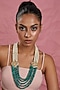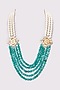 Featuring a 22 kt gold plated long mala studded with pearls and green beads, set in mixed metal. Perfect for all occasions.