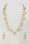 Featuring a 22 Kt gold plated necklace studded with kundan polki and pearls, set in mixed metal. It is paired with a matching pair of earrings.