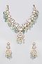 Featuring a 22 Kt gold plated collar necklace studded with polki and baby pearls, set in mixed metal. It is paired with a matching pair of earrings.