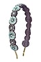 Featuring a blue hairband in suede and cotton base with beads, glass crystal chain, glass crystals, plastic sequins hand embroidery. It has a suede lining.