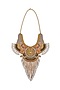 Featuring a gold necklace with metal chains, glass crystal stones, crystal chains and beads hand embroidery, set in mixed metal.