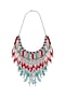 Featuring a red necklace studded with multi-colored stones and tassels, set in mixed metal.
