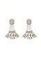 Featuring a pair of silver dangler earrings studded with brass chain, glass crystals, thread and beads, set in suede.