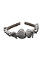 Featuring a white hairband in suede base with beads, cut beads, crystals, plastic tube and pearl hand embroidery. It has a suede lining.