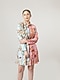 Featuring a blue and pink mini dress in rayon and crepe base with victorian style print.