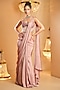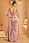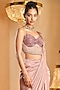 Featuring a lilac draped saree in cotton satin base. It is paired with a net corset. Accentuate it with statement jewellery and heels for cocktail parties or wedding ceremonies.