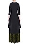This set features a black C cut asymmetric kurta in silk chanderi base embedded with gota patti work all over. It has a round neckline and hook-eye closure detailing on the front placket. It is paired with olive color marble dyed skirt in georgette base.