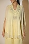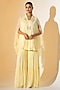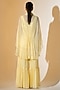 Featuring a butter yellow kurta in georgette base with pearl scatter detailing. It is paired with sharara pants. Style it with statement earrings and block heels for festive occasions, haldi ceremony or family gatherings.