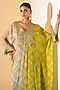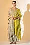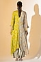 Featuring a grey and olive green bandhani kurta in georgette base. It is paired with an inner and straight pants. Style it with statement earrings and block heels for a festive occasion, sangeet or family gatherings.