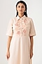 Light Beige Cotton Floral Embroidered Shirt Dress