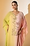 Lime Green & Pink Georgette Palm Embroidered Kaftan Set