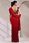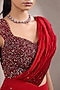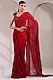 Featuring a maroon draped saree in georgette base. It is paired with a blouse having cutdana, sequins and beads embellishments. Accentuate it with zircon jewellery and heels for a sangeet or cocktail ceremony.