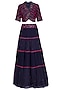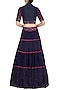 Featuring a navy blue lehenga set in chanderi silk, net and georgette base with frill and embellishments.