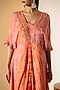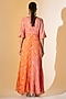 Featuring an orange and peach bandhani cowl dress in georgette base with embroidery. Style it with statement earrings and block heels for festive dinners, family functions and summer weddings.