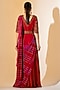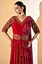 Featuring a red leheriya draped saree in georgette base with cutdana and sequins embroidery. It is paired with an embroidered belt. Style it with statement earrings and block heels for a festive occasion, sangeet or cocktail ceremony.