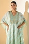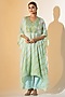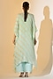 Featuring an aqua blue kaftan in pure bandhej base with embroidery. It is paired with an inner and cotton straight pants. Style it with statement earrings and block heels for a festive occasion, mehendi or family gatherings.