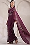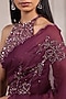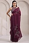 Featuring a wine saree in organza base. It is paired with a blouse having cutdana, sequins and beads embellishments, including an underskirt. Accentuate it with zircon jewellery and heels for a sangeet or cocktail ceremony.