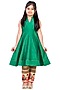 Featuring a green kurta for girls in silk and cotton silk base with lace embroidery and brooch detailing. It is paired with pant having print. Accessorize it with matching hair accessories and sandals for any festive occasion.