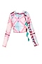 Featuring a blush pink clamp dyed crossover style xerox crop top with blue knotted tie up thread fringes tassel tie ups on the front yoke.