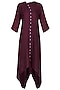 Featuring a maroon tunic in cotton base with assymetrical hem and binding details on front.