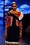 Featuring a navy blue tunic in cotton base with red bow detailing on the side seams.