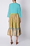 Featuring a sky blue and gold tiered dress with 3/4th sleeves.