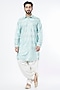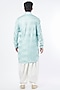 Featuring a powder blue pathani kurta in cotton and chanderi base with sequins work. It is paired with contrasting off-white salwar pants.