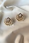Gold Finish Pearl & Kundan Polki Stud Earrings In Sterling Silver