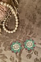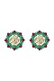 Featuring a pair of 18 Kt gold plated stud earrings studded with vellore polki, semi precious emerald, and ruby, set in silver.