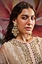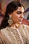 Featuring a pair of 18kt gold plated chandbali earrings studded with kundan polki, fresh water pearls, CZ diamonds, ruby emerald semi precious stones, set in 92.5 sterling silver. Add a touch of sparkle to your ensemble, perfect for festive occasions, weddings or sangeet ceremony.