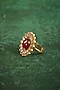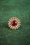 Featuring a 18kt gold plated ring studded with kundan polki, CZ diamonds and ruby semi precious stones, set in 92.5 sterling silver. Add a touch of sparkle to your ensemble, perfect for festive occasions, weddings or sangeet ceremony.