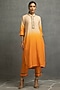 Featuring a yellow ombre straight kurta in cotton silk base with hand embroidery. It is paired with matching embroidered straight pants.