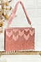 Featuring a pink clutch with sequins and pearl drop detailings. It has a raw silk lining and an embellished strap.