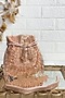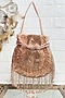 Featuring a rose gold potli with sequins, pearls and rhinestones hand embellishments, including attached fringes. It comes with a raw silk lining and an attached handle.