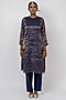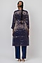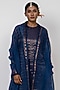 Featuring a blue kurta in handwoven stripe chanderi silk base with embroidery. It is paired with handwoven chanderi silk pants and an organza silk dupatta. Accentuate it with statement earrings and heels for a festive ceremony.