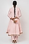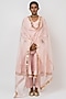 Featuring a pink kurta in handwoven chanderi silk base with hand embroidery. It is paired with pants and an organza silk dupatta. Accentuate it with statement earrings and heels for a festive ceremony.