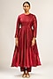 Featuring a wine anarkali in handwoven chanderi silk base with embroidery. It is paired with pants and a dupatta. Accentuate it with statement earrings and heels for a festive ceremony.
